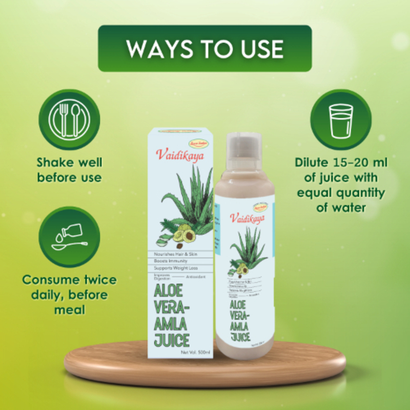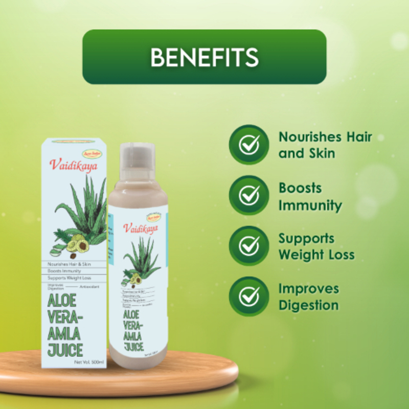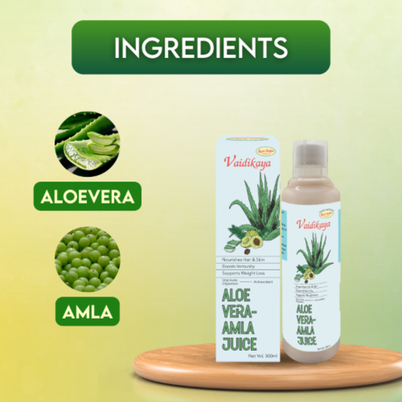 Aloevera juice is a natural beverage it is derived from the succulent leaves of the aloevera plant unlike the clear gel found inside the leaf Aloevera juice is made by procesing the entire leaf,including the outer rind,resulting in a liquid that often has a slightly bitter taste. Amla juice ,derived from the indian gooseberry ,is a nutritional powerhouse packed with vitamin c,antioxidants,and other essential nutrients. Combining these 2 together,provides the ultimate potion for good health and well being