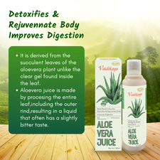 Aloevera juice is a natural beverage. it is derived from the succulent leaves of the aloevera plant unlike the clear gel found inside the leaf Aloevera juice is made by procesing the entire leaf,including the outer rind,resulting in a liquid that often has a slightly bitter taste. this juice is touched for a variety of potential health benefit,stemming from the plants rich composition of vitamins ,minerals,antioxidants and polysaccharides