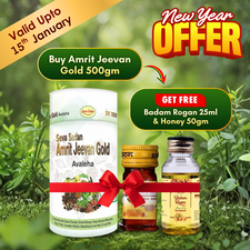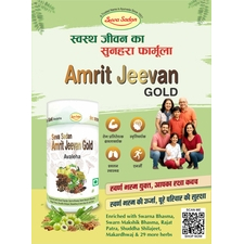 Amrit Jeevan Gold Avaleha is enriched with rare and potent ingredients such as Shwet Chandan, Swarna Bhasma, Swarna Makshik Bhasma, Rajat Patra, Shuddha Shilajeet, and Makardhwaj, along with powerful herbs like Amla, Ashwagandha, Guduchi, and other Rasayana botanicals.