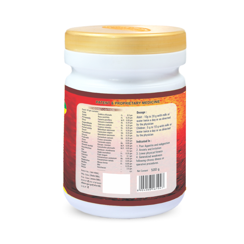 Excellent complete health tonic for all age groups male & female. Prepared from premium quality herbs and Shashtrokt Bhasmas (Nutritive micro minerals).