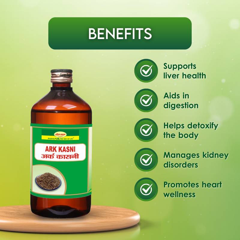 Ark Kasni prepared by aqueous distillation of chicory seeds. It is useful in diseases of the liver, excessive thirst, and urinary disease. It reduces inflammation of the liver and is effective in the treatment of hepatitis.