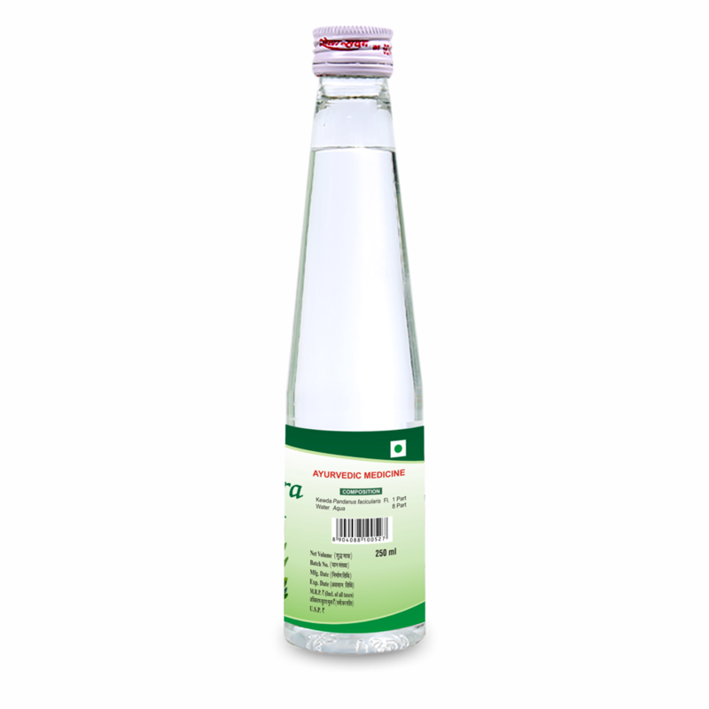 Prepared from fresh Kewra flowers through classical Ayurvedic Arka method, having odour, flavour and properties of Kewra. An Ayurvedic natural formulation, without any added chemical preservatives.
