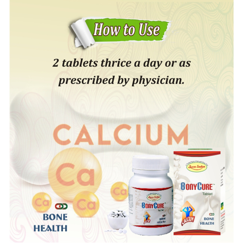 Bonycure Tablet is a bone strengthening formula that make bones strong and protects bone from degenaration. Bonycure tablet prepared from the natural ingredients that were mentioned in ayurvedic classics to cure bones disorders.
