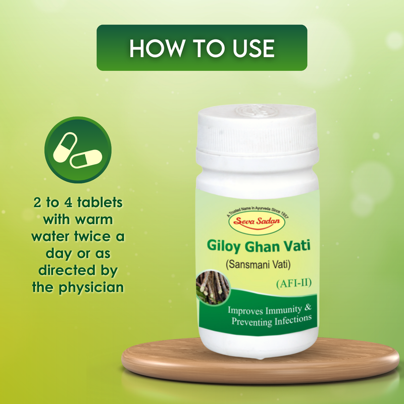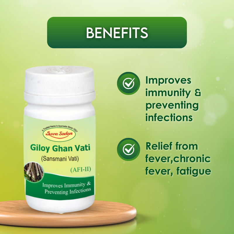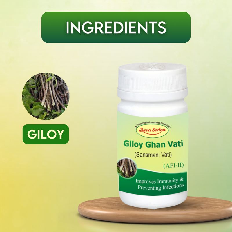 Giloy Ghanvati is a classical ayurvedic formulation, which possessed the concentrated and precious healing and caring qualities of Giloy one of them is rasayana property (property of a drug that delayed the geriatric effects and prevents from diseases to a person) of Guduchi that was mentioned in ayurvedic classical texts.