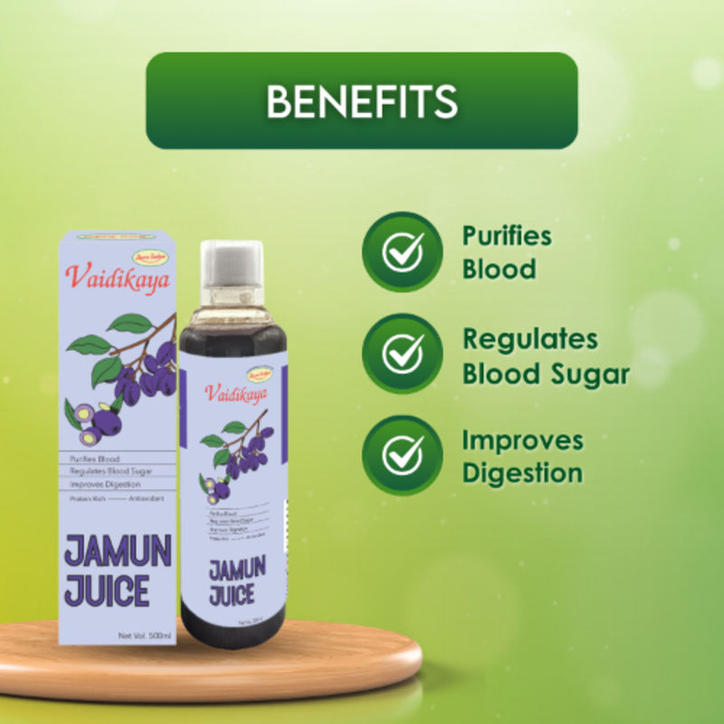 Jamun Juice is packed with nutrients, including vitamin C, Iron, Magnesium, Potassium, Fiber, Antioxidant.