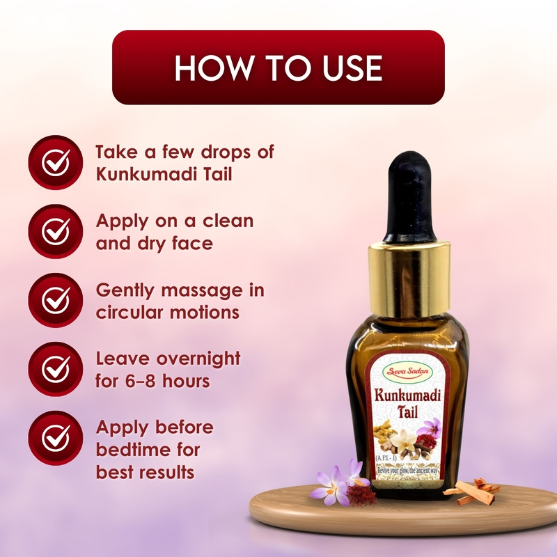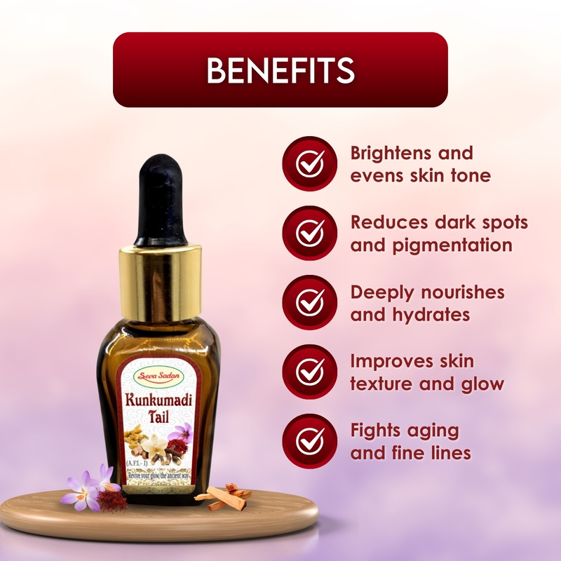 Kunkumadi Tail is a traditional Ayurvedic facial oil known for its skin-brightening and anti-aging benefits. It helps reduce acne, scars, and improves overall skin health by promoting hydration and enhancing natural glow.