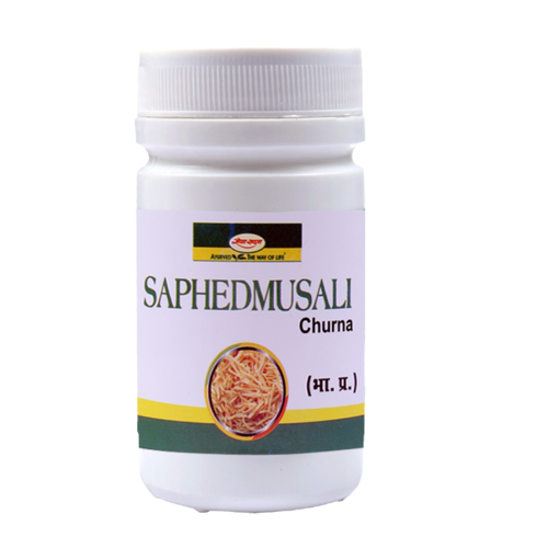 Saphedmusali Churna is widely used in Ayurveda for its healing properties. The most noteworthy Saphedmusali benefit is in its capacity to address issues related to male debility. Also known by the names of indian viagra or herbal viagra. Saphedmusali is a rich source of vitamins, alkaloids, proteins e.t.c.